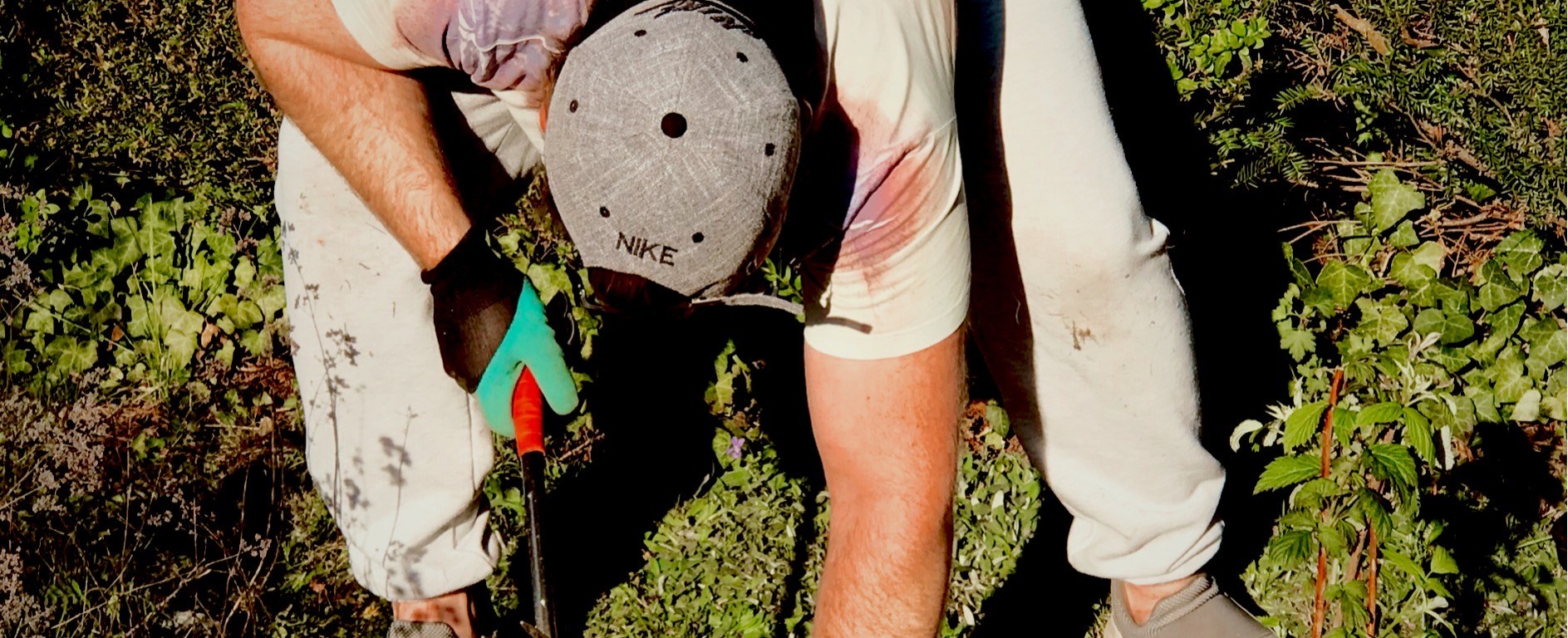 Ich hätte zwar nicht gedacht, dass ich ne f**** Stunde brauche, um den Efeu vom Beet zu kriegen.