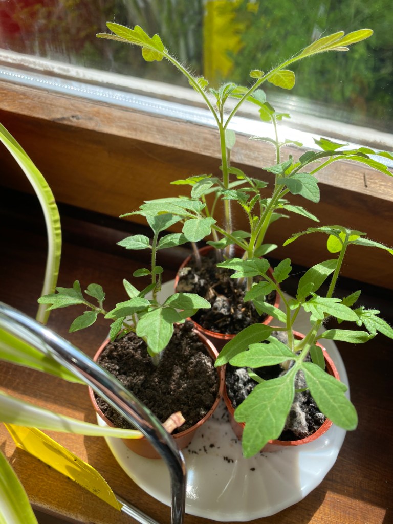 Eigentlich erstaunlich, das waren die ersten Tomaten, die ich in die Erde eingesetzt hatte. Sie sind so langsam gekommen. Aber zum Schluss wurden die kleinen Töpfchen doch zu eng und es waren wieder mehr, als gedacht.
