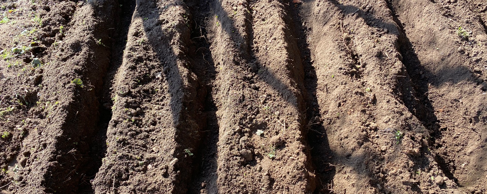 Die Erde in unserem Garten ist echt mäßig. Jetzt möchte ich aber auch nicht zu viel Geld in das Schatten-Beet investieren – deshalb habe ich die Fläche, immerhin 30 Quadratmeter, erst einmal umgegraben und dann Pflanzreihen ausgehoben, in denen ich frische, gute Erde aus dem Aldi (40 Liter für 5 Euro) mit der bestehenden Erde gemischt habe.