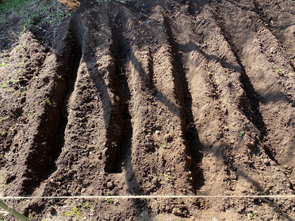 So konnte ich das gesamte Beet mit 2 Säcken anlegen. Investition : 10 Euro und ca. 4 Stunden Arbeitszeit.