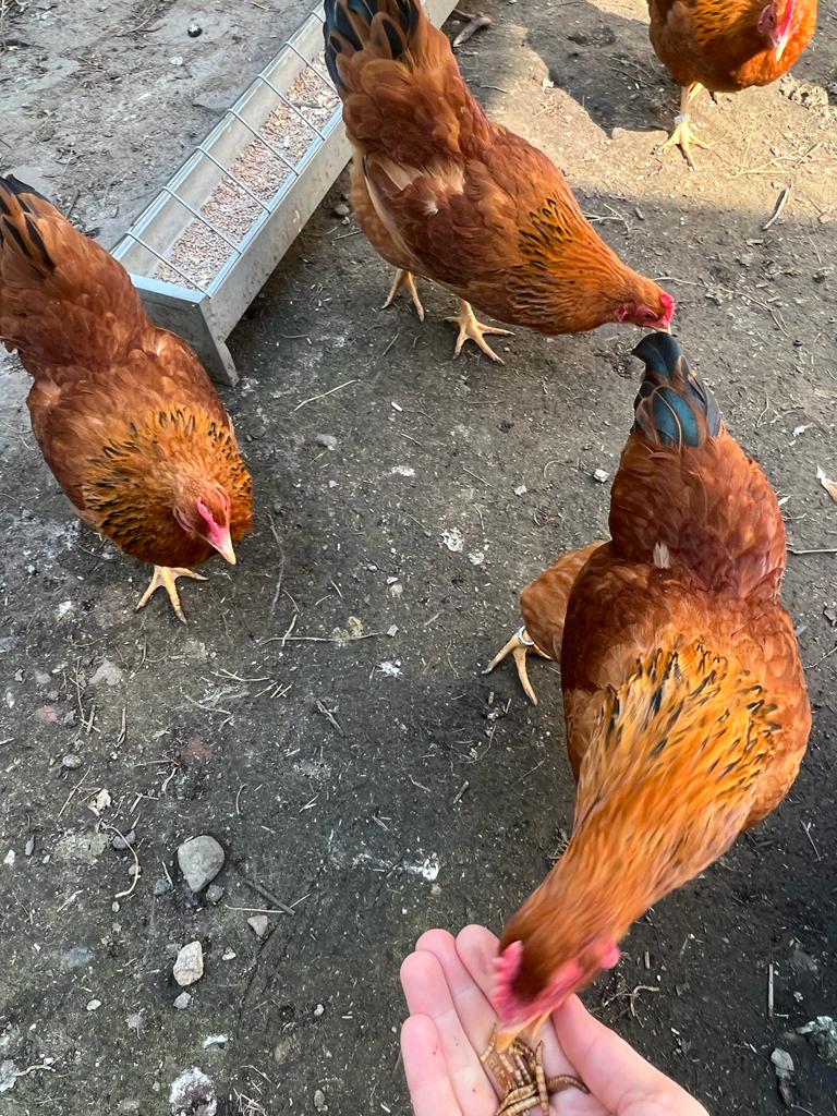Mit unserer Begeisterung für die Hühnerhaltung bekamen wir automatisch auch mehr Informationen über das Halten von Hühnern und auch über die Haltung in den Betrieben. Auf der Instagram-Page von bspw. „Rette das Huhn“ kann man sehen, in was für einem furchtbaren Zustand Legehennen nach etwas mehr als einem Jahr ihrer „Tätigkeit“ in der industriellen Produktion sind. Sie sehen einfach jämmerlich aus. Wenn man einmal eine Beziehung zu der Gattung Hühnern als Tier hergestellt hat und sie nicht mehr nur als Eierlieferant und Tiefkühlhühnchen betrachtet, macht der Anblick der Hennen einfach traurig. Längst kann der Verein nicht alle Tiere retten, Hennen die nicht abgeholt oder vermittelt werden, werden von den Betrieben einfach getötet.